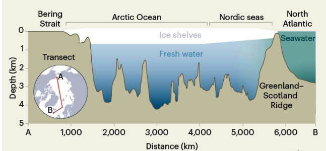 See also: Hoffmann, S. 2021. The Arctic Ocean might have been filled with freshwater during ice ages. Nature, v. 590, p. 37-38; DOI: 10.1038/d41586-021-00208-7