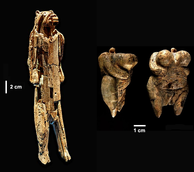 Aurignacian sculptures: ‘Lion-Man’ and ‘Venus’ from the Hohlenstein-Stadel and Hohle Fels caves in Germany.