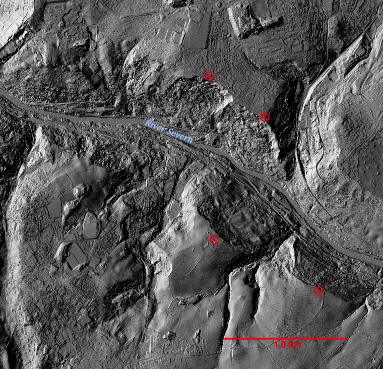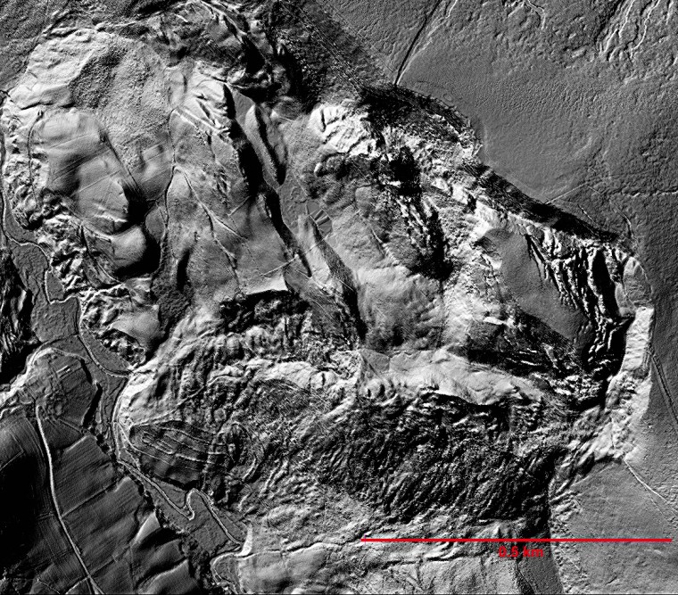 The most risky places are those with a history of landslides etc. So detailed mapping of such risk-prone ground is clearly needed. The UK has a large number of sites where mass wasting has been recorded, and below are lidar images of three of the most spectacular. Undoubtedly, there are other areas where no recent movements have been recorded, but which may ‘go off’ under changed climatic conditions. One of the best documented risky areas is in the English West Midlands within the new city of Telford. It follows the flanks of the River Severn as it passes through the Ironbridge Gorge that was cut by subglacial meltwater after the last glacial maximum. This area is also recognised as having been the birthplace of the Industrial Revolution. In 1714 Abraham Darby pioneered the use of coke in iron smelting and mass production of cast iron at Coalbrookdale a few kilometres to the east. The Severn also powered numerous forges and other heavy industries in the 18th and 19th centuries. Industrial activity and townships in the Gorge have been plagued by large-scale mass wasting throughout subsequent history and no doubt long before. An excellent illustrated guide to the area has been produced by the Shropshire Geological Society (Rayner, C. et al. 2007. A Geological Trail through the landslides of Ironbridge Gorge, Proceedings of the Shropshire Geological Society, v. 12, p. 39-52; ISSN 1750-8568)