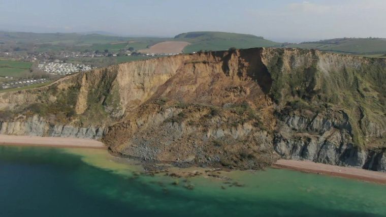 In the field, areas of what is known as ‘mass wasting’, such as landslides, landslips, rockfalls, debris flows and solifluction, show topographic features that are characteristic of the processes involved. They can be mapped by careful geological surveys. But are overlooked, being masked by vegetation cover such as woodland or because slower downslope movement of soil has smoothed out their original landforms. Potentially devastating mass wasting is encouraged by increased moisture content of soils and rocks that lie beneath steep slopes. Moisture provides lubrication that gravitational forces can exploit to result in sudden disruption of slopes and the movement of huge masses of Earth materials. Large areas of upland Britain show evidence of having experienced such mass wasting in the past. Some continue to move, such as that in the Derbyshire Peak District on the slopes of Mam Tor, as do cases on rugged parts of Britain’s coast where underlying rocks are weak and coastal erosion is intense (see image above).