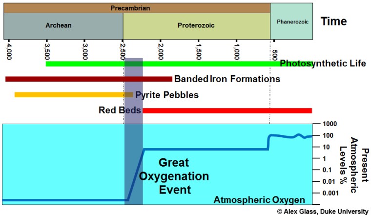 It is worth bearing in mind, however, that large impacts and their geochemical aftermath are, in a geological sense, instantaneous events widely spaced in time. They may have chemically ‘sucked’ oxygen out of the Archaean and early-Palaeoproterozoic atmosphere. Yet photosynthesising bacteria would have been generating oxygen continuously between such sudden events. The same goes for the supply of reduced ferrous iron and its circulation in the oceans of those times, capable of scavenging available oxygen through simple chemical reactions. In fact we can still observe that in action around ocean-floor hydrothermal vents where a host of reduced elements and compounds are oxidised by dissolved oxygen. The difference is that oxygen is now produced more efficiently on land and in the upper oceans and a less vigorous mantle is adding less iron-rich basalt magma to the crust: the balance has changed. Another issue is that the Great Oxygenation Event terminated the oxygen-starved conditions of the Archaean and Palaeoproterozoic in about 200 million years, despite the vast production of BIFs before and after it happened. The Wikipedia entry for the GOE provides a number of hypotheses for how that termination came about. Interestingly, one idea looks to a shortage of dissolved nickel that is vital for methane generating bacteria: a nickel ‘famine’. A geochemical setback for methanogens would have been a boost for oxygenic photosynthesisers and especially their waste product oxygen: methane quickly reacts with oxygen in the atmosphere to produce CO2 and water. Anomalously high nickel is a ‘signature element’ for meteorite bombardment, though it can be released by hydrothermal alteration of basalt. Had meteoritic nickel been fertilising methane-generating bacteria in the oceans prior to the GOE?
