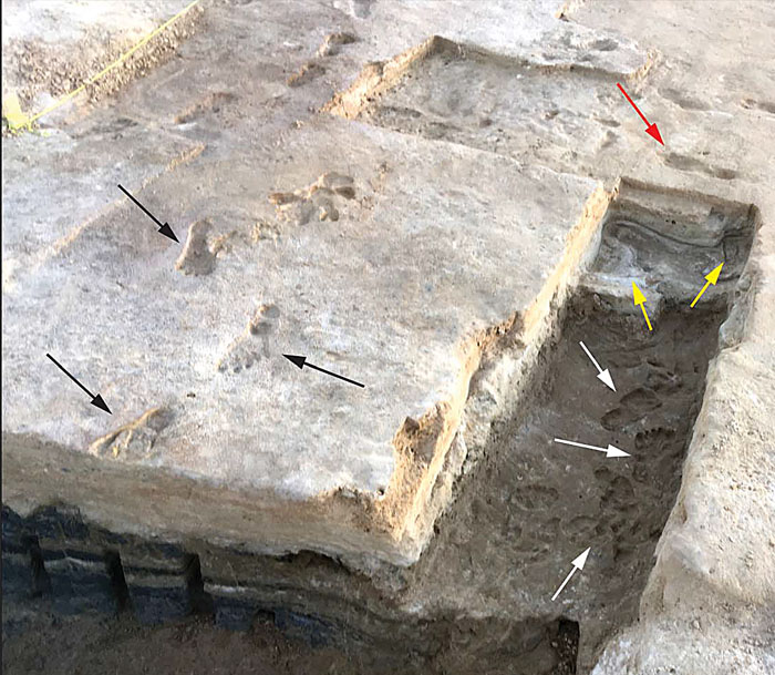 Since 2018 Skye has also become a must-visit area for vertebrate palaeontologists. Beneath Palaeocene flood basalts is a sequence of Jurassic strata, both shallow marine and terrestrial. One formation, the Great Estuarine Group of Middle Jurassic (Bathonian, 174–164 Ma) age covers the time when meat-eating theropod- and herbivorous sauropod dinosaurs began to grow to colossal sizes from diminutive forebears. While other Jurassic sequences on Skye have notable marine faunas, its Bathonian strata have yielded a major surprise: some exposed bedding surfaces are liberally dotted with trackways of the two best known groups of dinosaur. The first to be discovered were at Rubha Nam Brathairean (Brothers’ Point) suggesting a rich diversity of species that had wandered across a wide coastal plain, also including the somewhat bizarre Stegosaurus. The latest finds are from a rocky beach at Prince Charles’s Point where the Young Pretender to the British throne, Charles Edward Stuart, landed and hid during his flight from the disastrous Battle of Culloden (16 April 1746). It was only in the last year or so that palaeontologists from the universities of Edinburgh and Liverpool, and the Staffin Museum came across yet more footprints (131 tracks) left there by numerous dinosaurs in the rippled sands of a Bathonian lagoon (Blakesley, T. et al. 2025. A new Middle Jurassic lagoon margin assemblage of theropod and sauropod dinosaur trackways from the Isle of Skye, Scotland. PLOS One, v. 20, article e0319862; DOI: 10.1371/journal.pone.0319862.